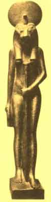 Isis and the Child Horus (British Museum) | Bast, the Cat Goddess, holding a Hathor-headed sistrum and an ęgis (British Museum) | Sekhet, Lion-headed Goddess, Wife of Ptah ("Sekhet, the Destroyer") (British Museum) |
